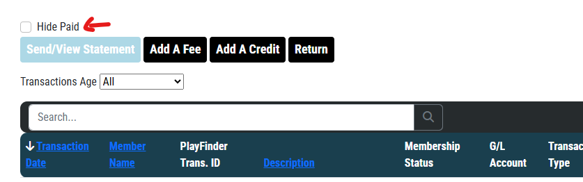 When viewing transactions for a family that has been very active, the list can become quite large. To clean this up we now have an option to hide Paid (transactions with a balance of $0).